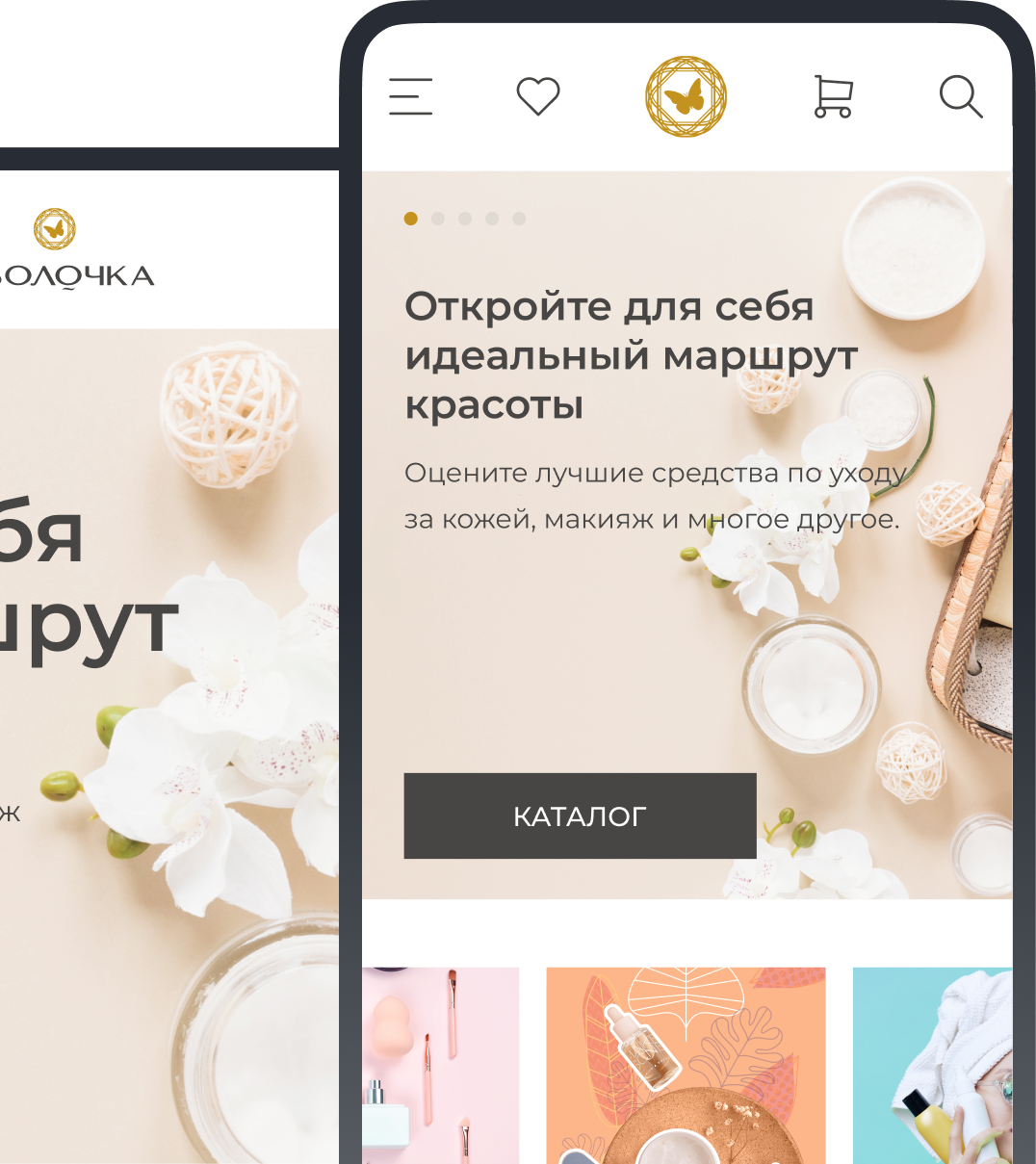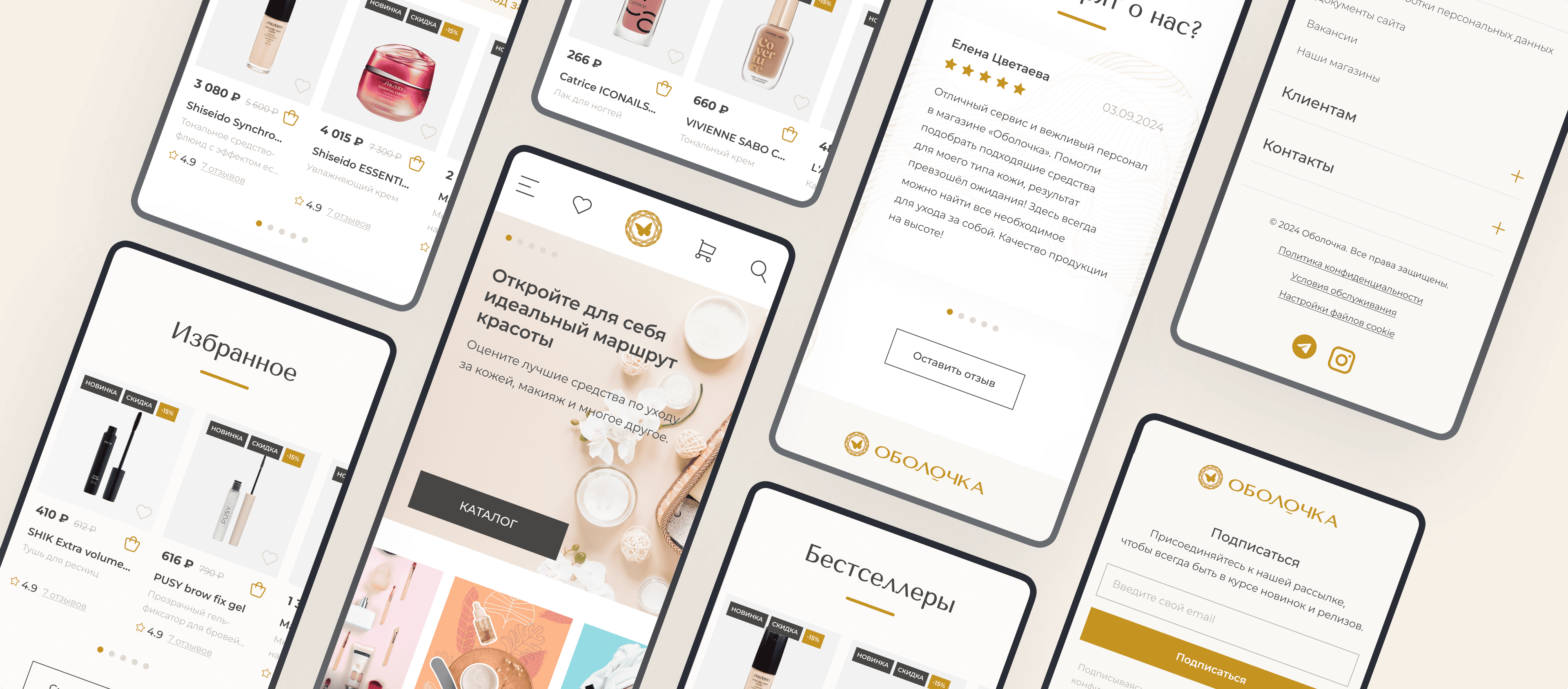 Интернет-магазин, визуал и tone of voice которого соответствуют уровню люксовой косметики с эстетичным, «чистым» интерфейсом, где в центре внимания — продукт
