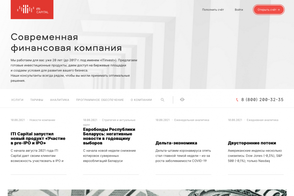 ITI Capital обратилась к нам, чтобы заказать корпоративный сайт. Мы провели комплексный редизайн