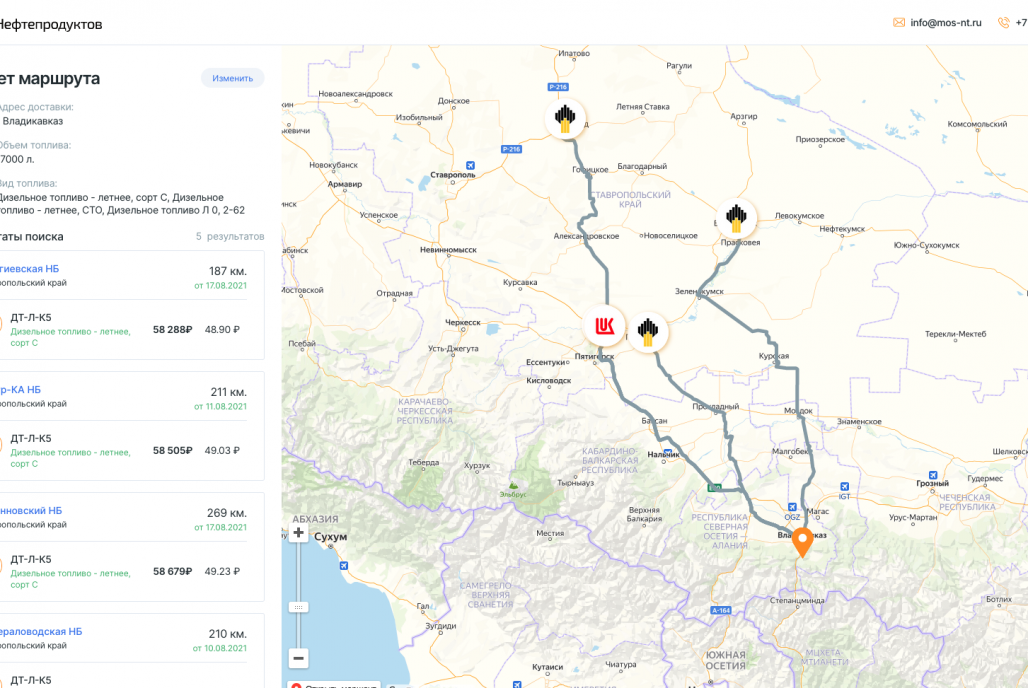 стоимости поставки и оформления заказа на нефтепродукты. Разработка сайта